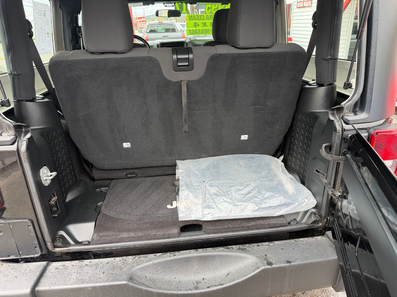 Decked out with black fender flares and a sleek body-colored grille, this Wrangler is as stylish as it is rugged. The swing-out rear cargo access makes loading and unloading a breeze, while the removable rear window lets you enjoy the breeze on those sunny days.